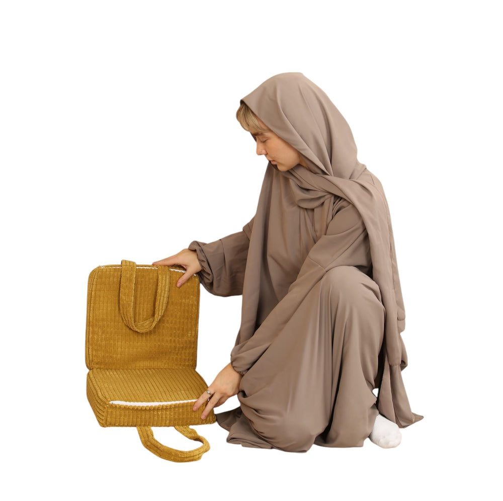 (Pocket and Handle): The design features a compartment for accessories, which can accommodate a phone, glasses, or headphones. Furthermore, it includes a handle for easy transport, making it perfect for travel and appropriate for use as a tablet lap stand on trains or planes.